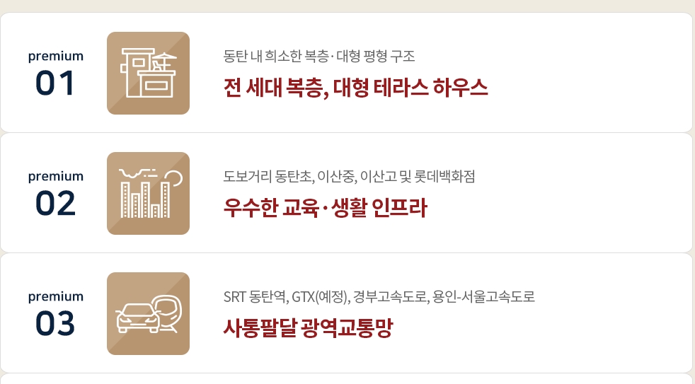 ㅇ 교통 : SRT동탄역, GTX(예정), 경부고속도로, 용인-서울 고속도로 등, 서울 수도권 이용 편리한 광역교통망