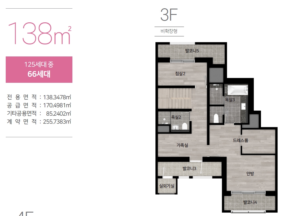 ㅇ 총세대수 125세대(138타입66세대, 148 타입 59세대)